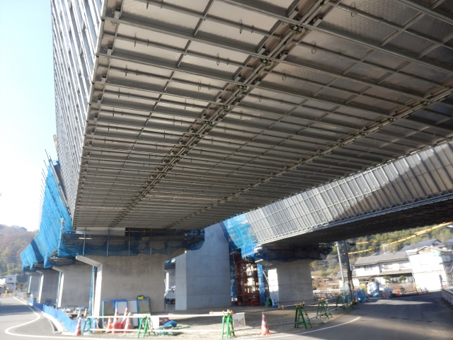 海や川、谷、道路などの交通路の上部を横切らせるように設置した構造物である橋梁を設置する工事です。